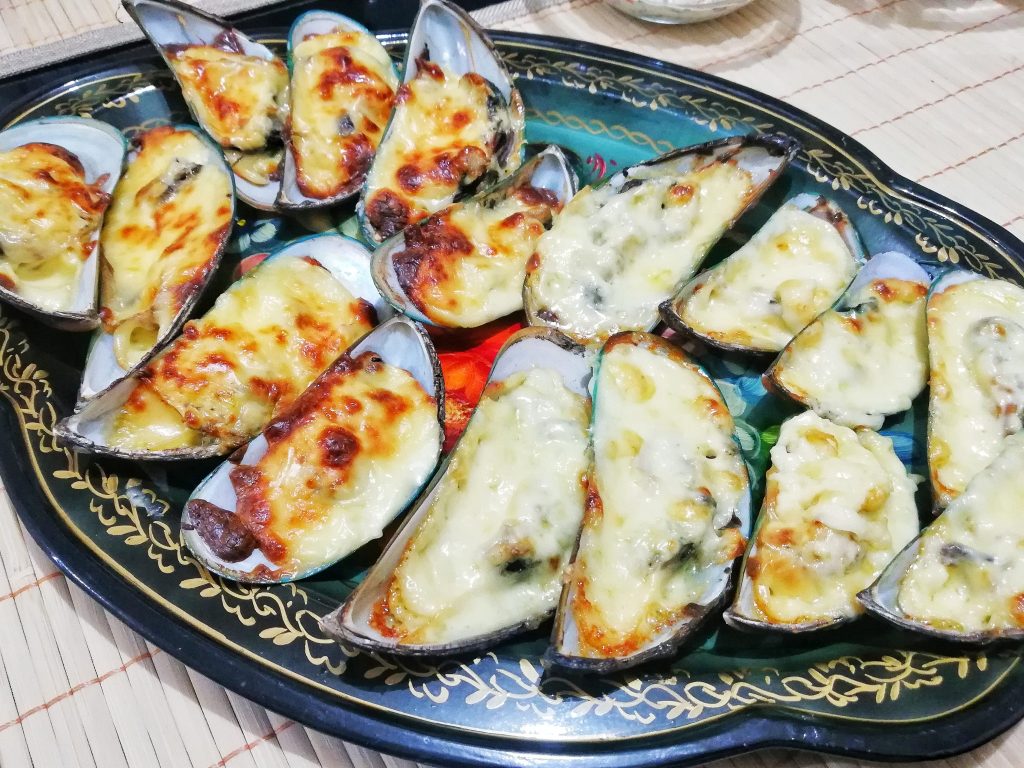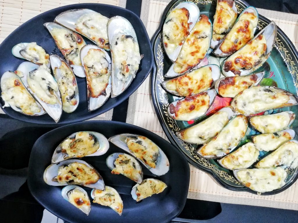 - Further top each mussel with grated cheese/s. You can mix your cheeses or use them separately like I did.