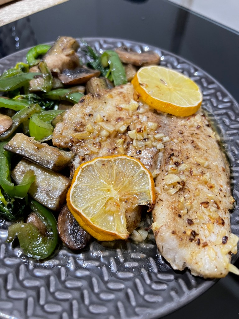 I paired my lemon garlic baked tilapia with some sautéed veggies (eggplant, bell pepper, and spinach). You can also pair it with rice, potatoes, or even bread. Totally up to you!