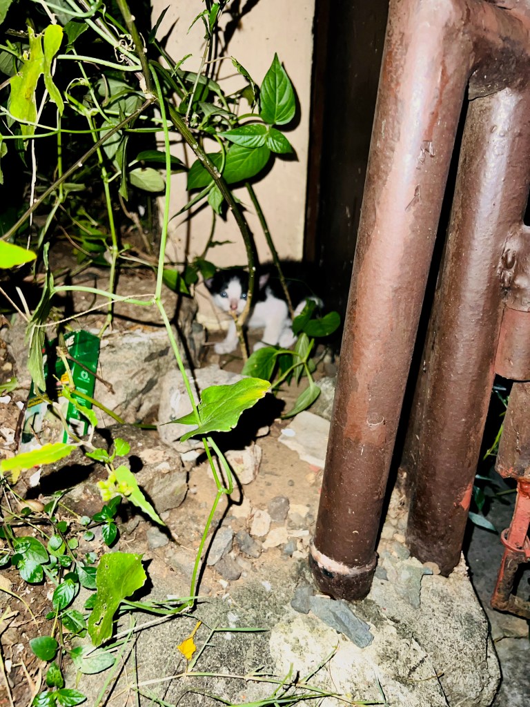 It was late afternoon when we returned home. It was quiet. We thought maybe the kitten was found. Thank God! We went inside the house and started to get settled. Not long after we had put our bags down did we start hearing his cries again. This time, they sounded weaker and more desperate. I imagined he didn’t have anything to eat or drink at all the whole day, and that broke my heart. A sense of panic took over me.