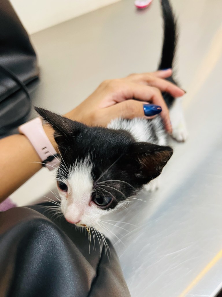 Thankfully, we live near my boyfriend’s family home where his dad—a certified cat person who looks after their own house cat and several community cats—had a lot of supplies. We started walking, determined to save a kitten that night. Tito Mon was very kind to help us. He gave us boxes and paper bags for a makeshift bed, and some litter and cat food to tide us over until we figured out what to do next.