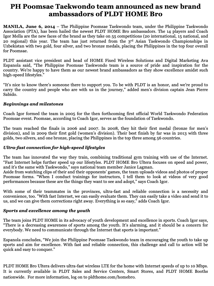 PH Poomsae Taekwondo team announced as new brand ambassadors of PLDT HOME Bro